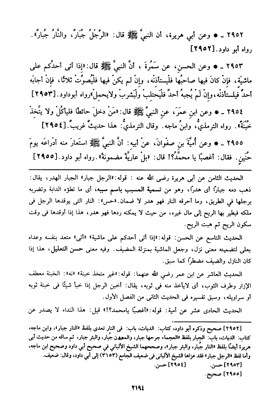 2952 - وعن أبي هريرة، أن النبي صلى الله عليه وسلم قال: ((الرجل جبار، والنار جبار)). رواه أبو داود. [2952]