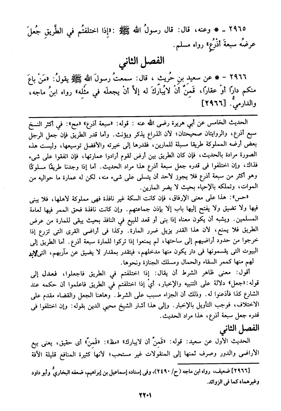 2965 - وعنه، قال: قال رسول الله صلى الله عليه وسلم: ((إذا اختلفتم في الطريق جعل عرضه سبعة أذرع)) رواه مسلم.
