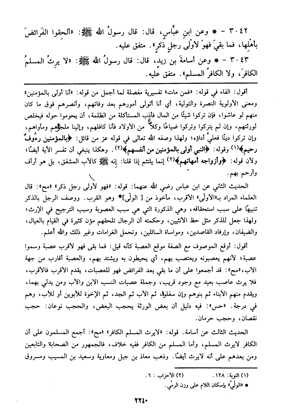 3042 - وعن ابن عباس، قال: قال رسول الله صلى الله عليه وسلم: ((ألحقوا الفرائض بأهلها، فما بقي فهو لأولي رجل ذكر)). متفق عليه.