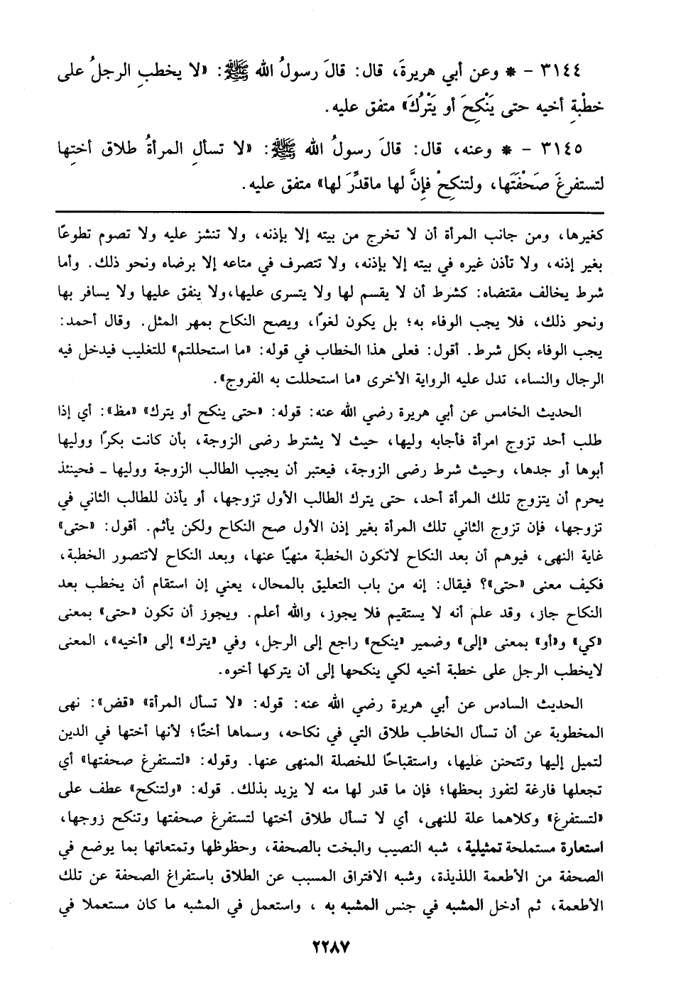 3145 - وعنه، قال: قال رسول الله صلى الله عليه وسلم: ((لا تسأل المرأة طلاق أختها لتستفرغ صفحتها، ولتنكح فإن لها ماقدر لها)) متفق علبه.