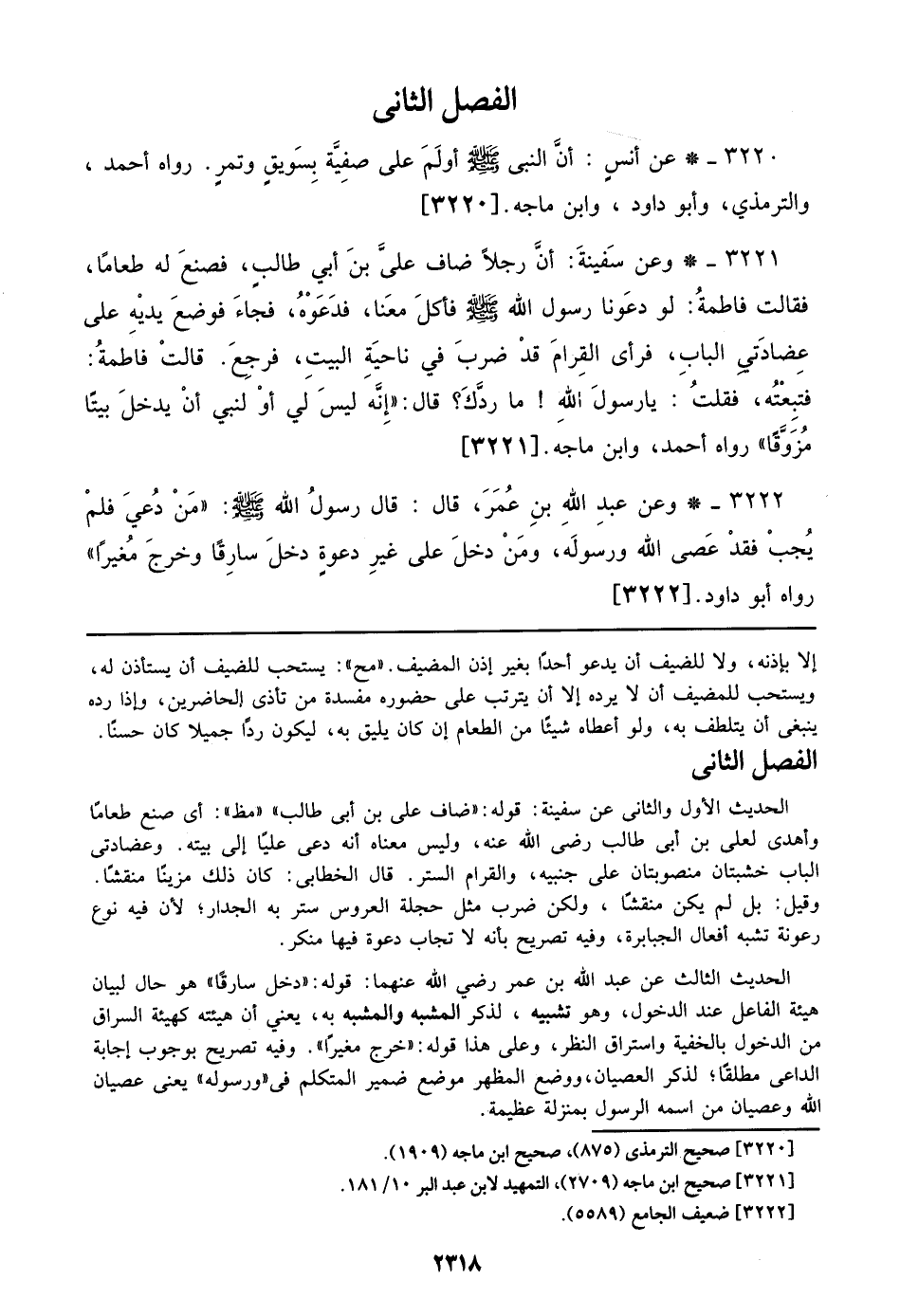 3220 - عن أنس: أن النبي صلى الله عليه وسلم أولم علي صفية بسويق وتمر. رواه أحمد، والترمذي، وأبو داود، وابن ماجه. [3220]