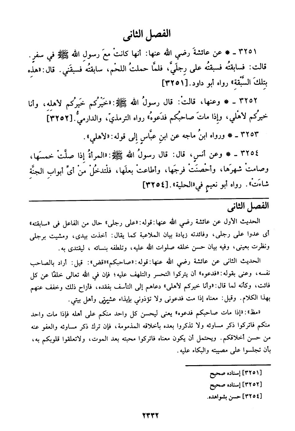 3251 - عن عائشة رضي الله عنها: أنها كانت مع رسول الله صلى الله عليه وسلم في سفر. قالت: فسابقته فسبقته علي رجلي، فلما حملت اللحم، سابقته فسبقني. قال: ((هذه بتلك السبقة)) رواه أبو داود. [3251]