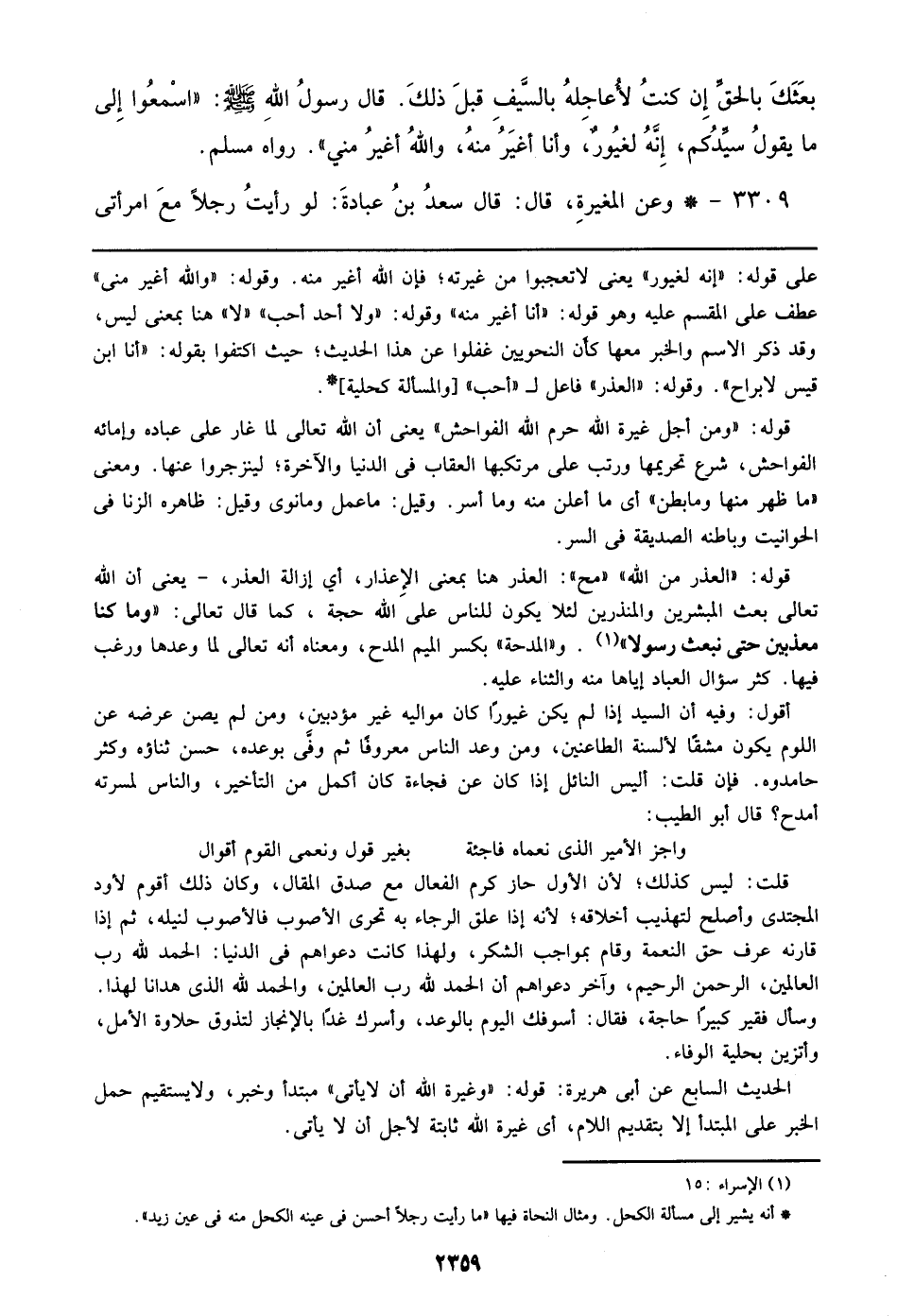 3309 - وعن المغيرة، قال: قال سعد بن عبادة: لو رأيت رجلا مع امرأتي