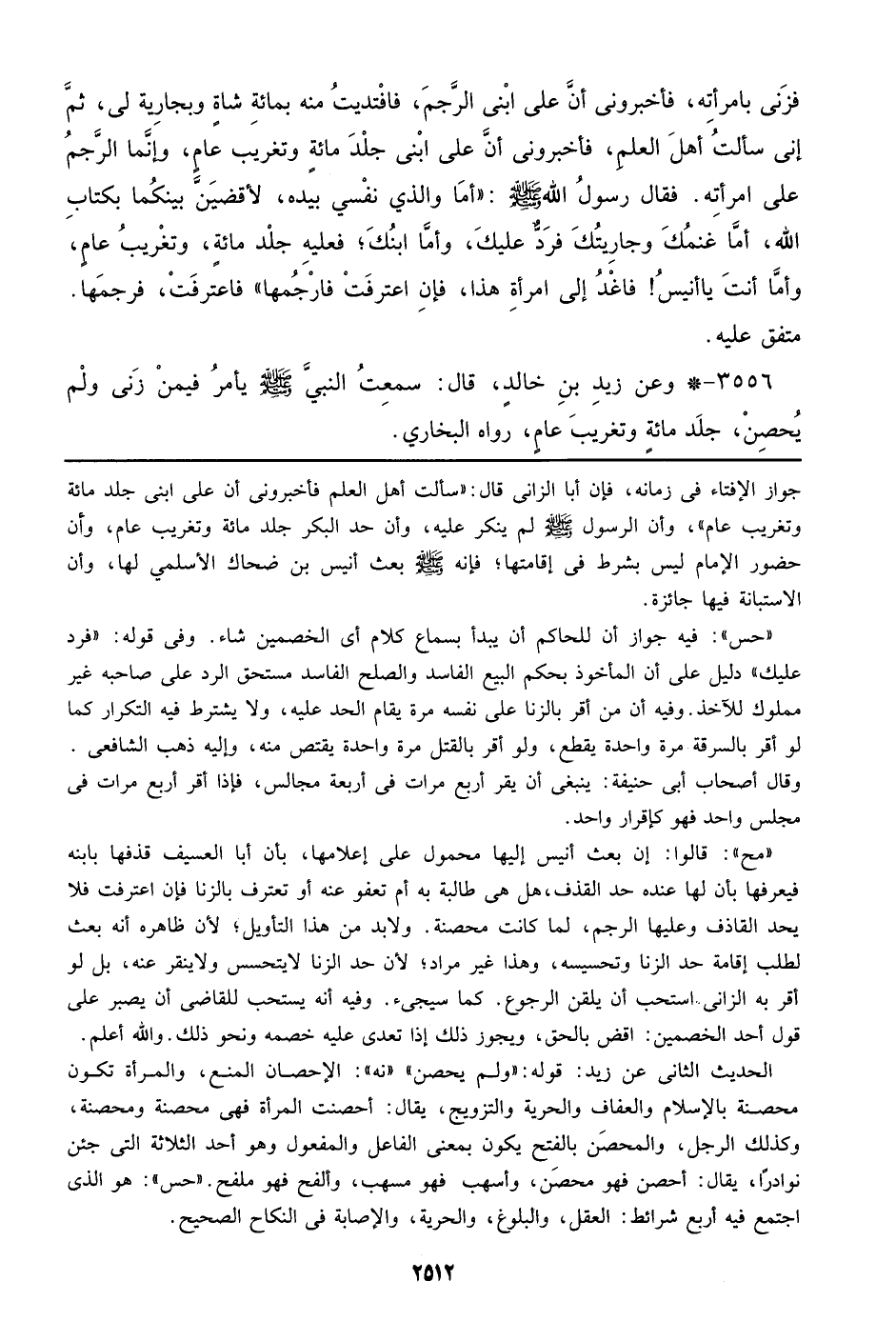3556 - وعن زيد بن خالد، قال: سمعت النبي صلى الله عليه وسلم يأمر فيمن زنى ولم يحصن، جلد مائة وتغريب عام، رواه البخاري.
