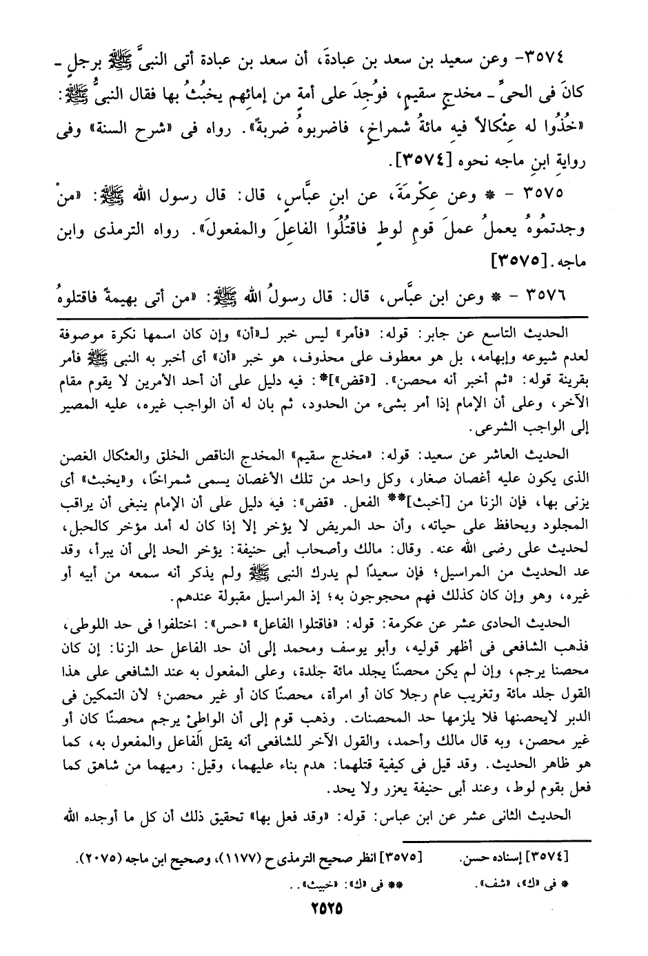 3575 - وعن عكرمة، عن ابن عباس، قال: قال رسول الله صلى الله عليه وسلم: ((من وجدتموه يعمل عمل قوم لوط فاقتلوا الفاعل والمفعول)). رواه الترمذي وابن ماجه. [3575]