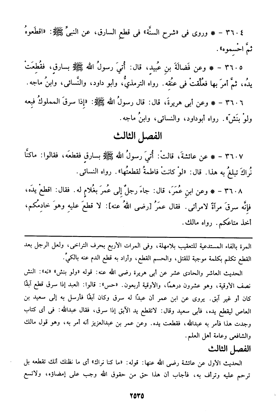 3604 - وروى في ((شرح السنة)) في قطع السارق، عن النبي صلى الله عليه وسلم: ((اقطعوه ثم احسموه)).
