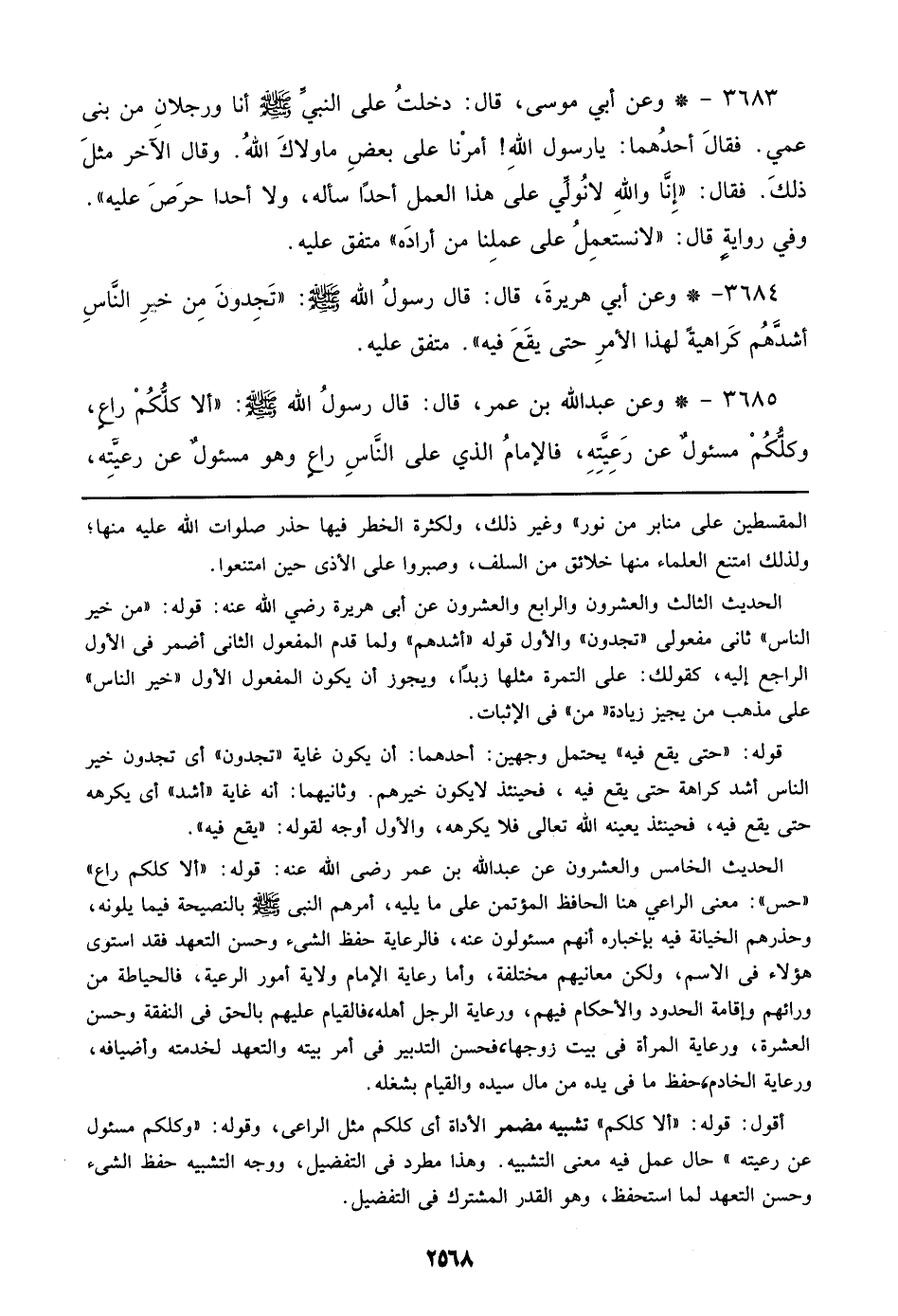 3685 - وعن عبد الله بن عمر، قال: قال رسول الله صلى الله عليه وسلم: ((ألا كلكم راع، وكلكم مسئول عن رعيته، فالإمام الذي علي الناس راع وهو مسئول عن رعيته،