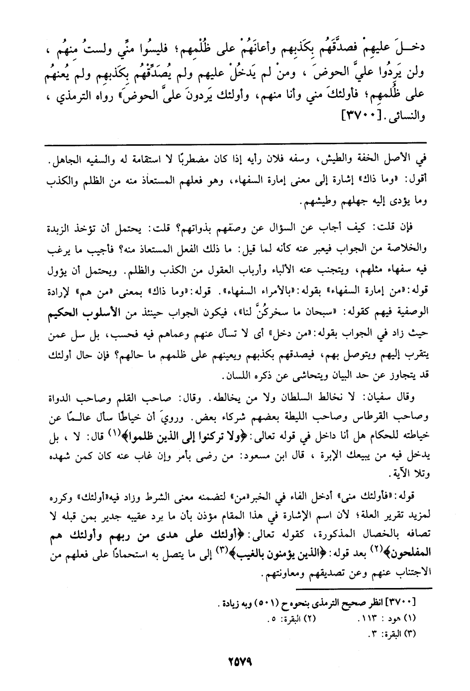 دخل عليهم فصدقهم بكذبهم وأعانهم علي ظلمهم؛ فليسوا مني ولست منهم، ولن يردوا علي الحوض، ومن لم يدخل عليهم ولم يصدقهم بكذبهم ولم يعنهم علي ظلمهم؛ فأولئك مني وأنا منهم، وأولئك يردون علي الحوض)) رواه الترمذي، والنسائي. [3700]