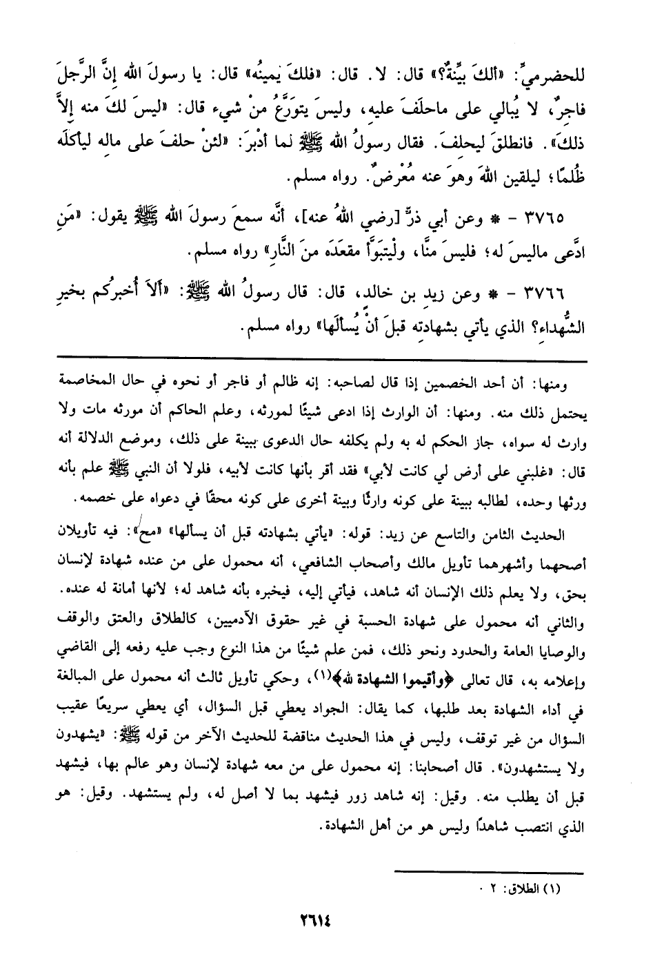 3766 - وعن زيد بن خالد, قال: قال رسول الله صلى الله عليه وسلم: ((ألا أخبركم بخير الشهداء؟ الذي يأتي بشهادته قبل أن يسألها)) رواه مسلم.