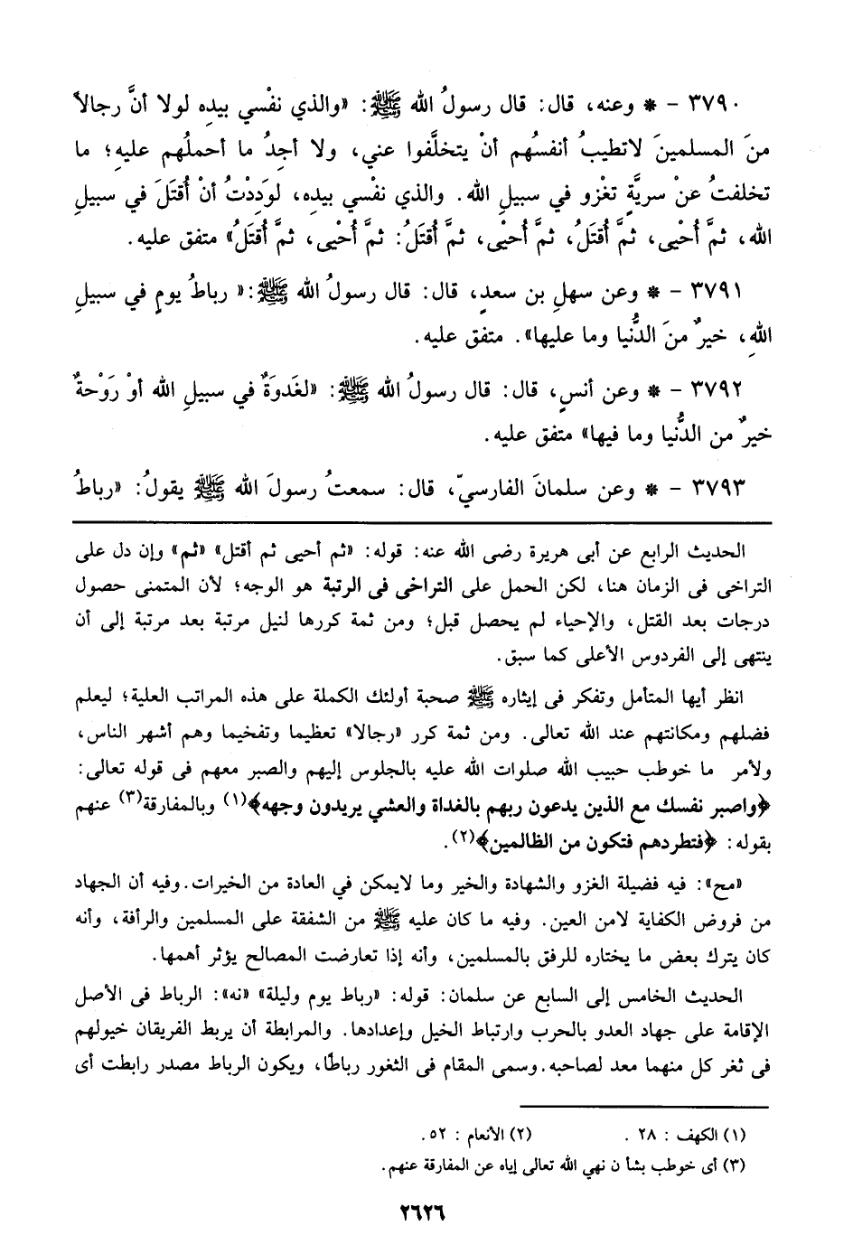 3791 - وعن سهل بن سعد، قال: قال رسول الله صلى الله عليه وسلم: ((رباط يوم في سبيل الله، خير من الدنيا وما عليها)). متفق عليه.