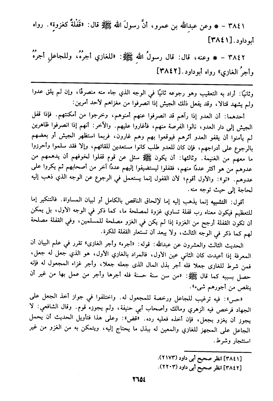 3841 - وعن عبد الله بن عمرو، أن رسول الله صلى الله عليه وسلم قال: ((قفلة كغزوة)). رواه أبو داود. [3841]