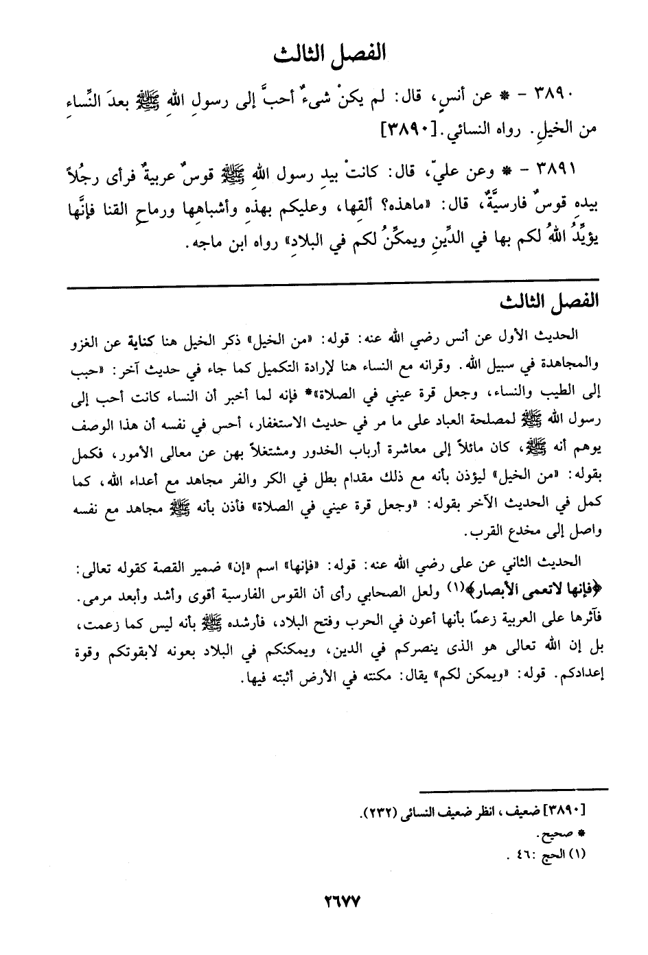 3890 - عن أنس، قال: لم يكن شيء أحب إلي رسول الله صلى الله عليه وسلم بعد النساء من الخيل. رواه النسائي. [3890]
