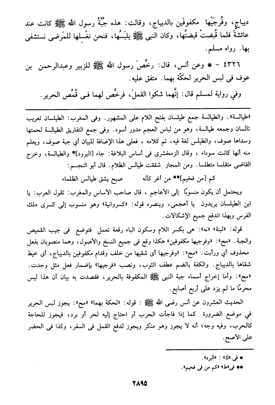 ويحتمل أن يكون منسوباً إلى الأعاجم، قال صاحب الأساس والمغرب: تقول العرب: يا ابن الطيلسان يريدون يا أعجمي، وينصره قوله: ((كسروانية)) وهو منسوب إلى كسرى ملك الفرس وبهذا اندفع جميع الإشكالات.