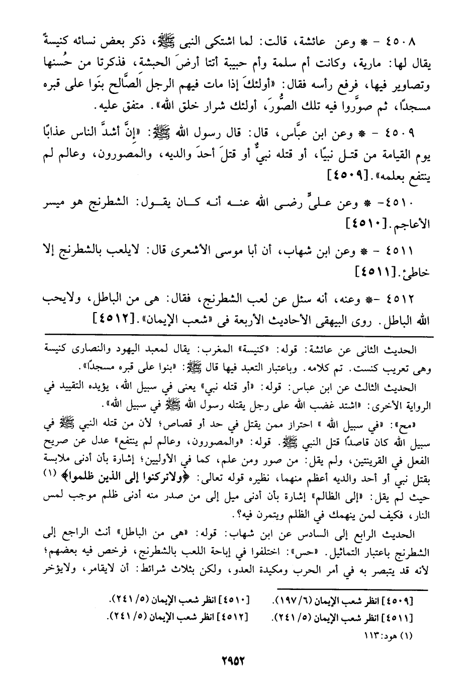 4512 - وعنه، أنه سئل عن لعب الشطرنج، فقال: هي من الباطل، ولا يحب الله الباطل. روى البيهقي الأحاديث الأربعة في ((شعب الإيمان)). [4512]