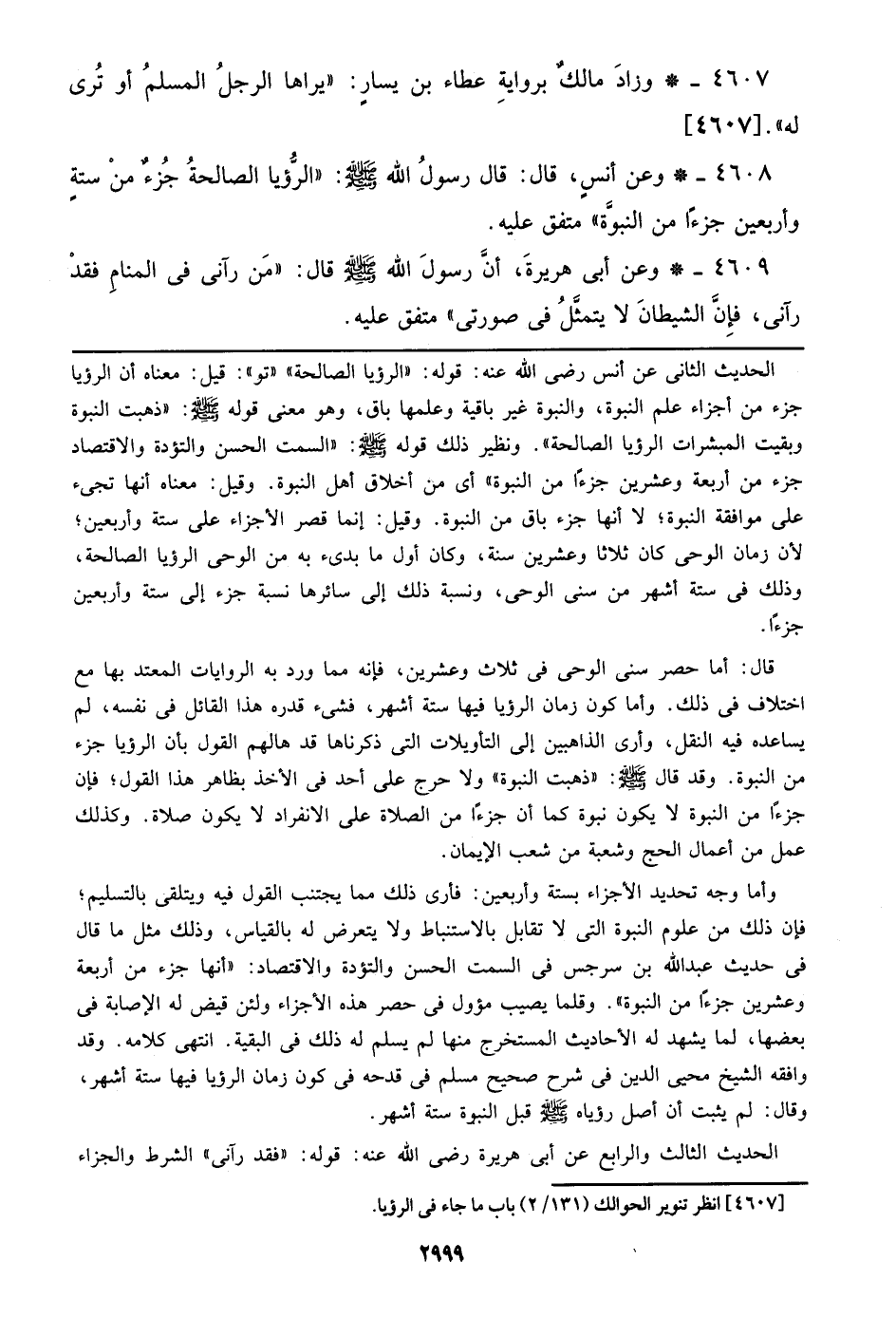 4608 - وعن أنس، قال: قال رسول الله صلى الله عليه وسلم: ((الرؤيا الصالحة جزء من ستة وأربعين جزءا من النبوة)) متفق عليه.