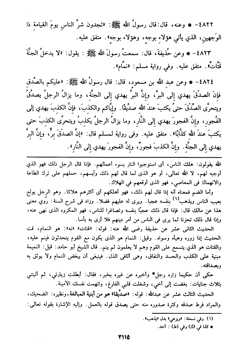4822 - وعنه، قال: قال رسول الله صلى الله عليه وسلم: ((تجدون شر الناس يوم القيامة ذا الوجهين، الذي يأتي هؤلاء بوجه، وهؤلاء بوجه)) متفق عليه.