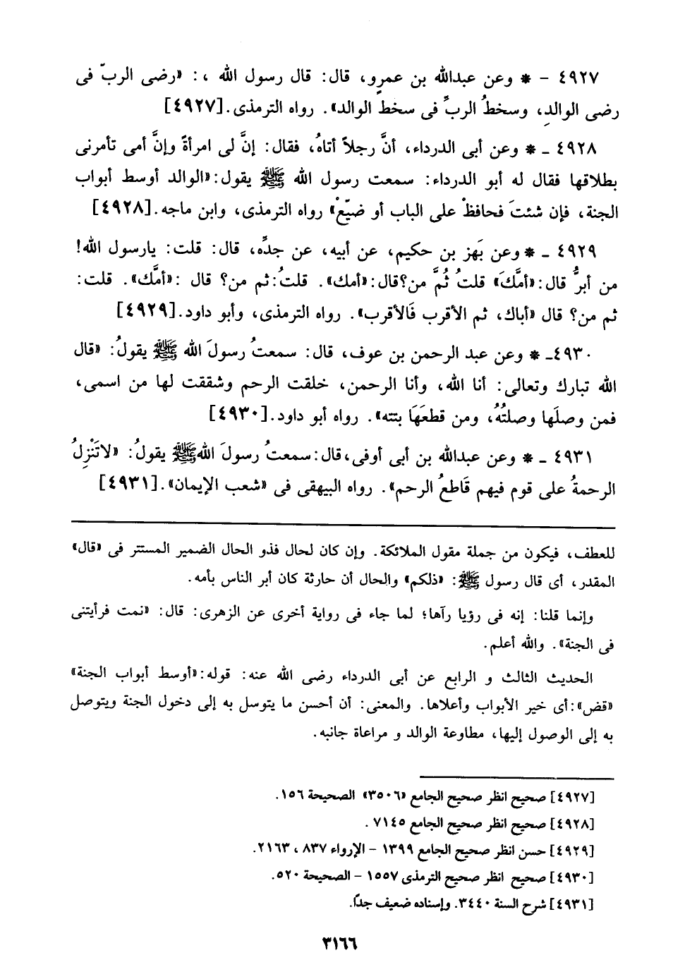 4927 - وعن عبد الله بن عمرو، قال: قال رسول الله صلى الله عليه وسلم،: ((رضى الرب في رضى الوالد، وسخط الرب في سخط الوالد)). رواه الترمذي. [4927]