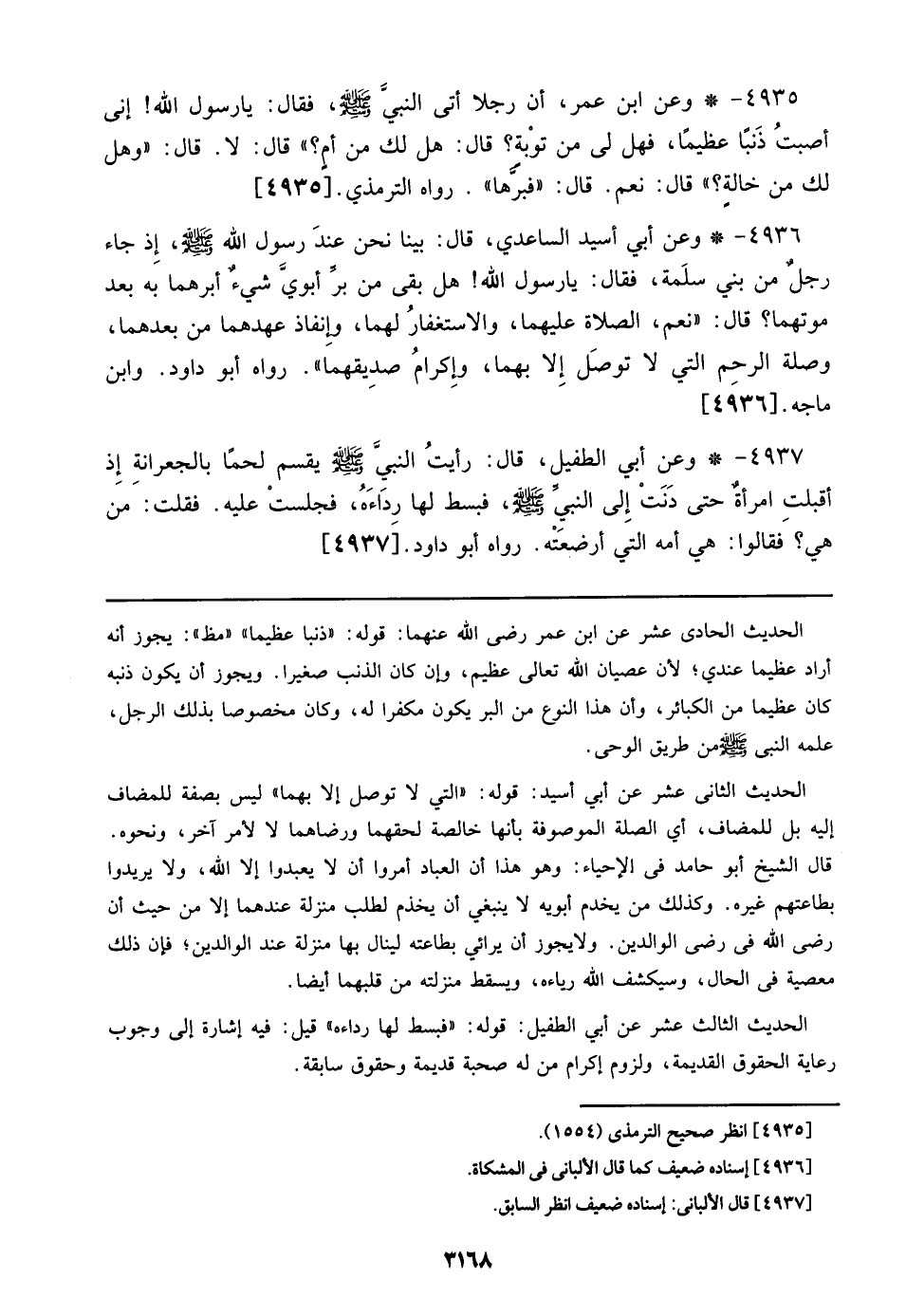 4936 - وعن أبي أسيد الساعدي، قال: بينا نحن عند رسول الله صلى الله عليه وسلم، إذ جاء رجل من بني سلمة، فقال: يا رسول الله! هل بقى من بر أبوي شيء أبرهما به بعد موتهما؟ قال: ((نعم، الصلاة عليهما، والاستغفار لهما، وإنقاذ عهدهما من بعدهما، وصلة الرحم التي لا توصل إلا بهما، وإكرام صديقهما)). رواه أبو داود. وابن ماجه. [4936]
