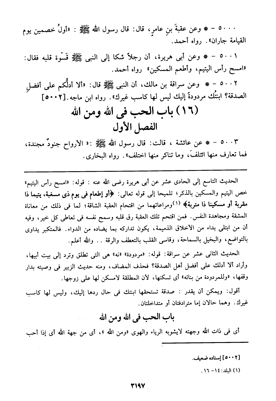 5001 - وعن أبي هريرة، أن رجلا شكا إلى النبي صلى الله عليه وسلم قسوة قلبه فقال: ((امسح رأس اليتيم، وأطعم المسكين)) رواه أحمد.