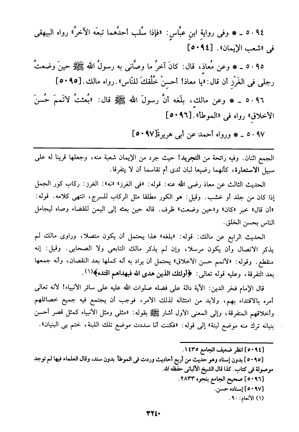 5095 - وعن معاذ، قال: كان آخر ما وصاني به رسول الله صلى الله عليه وسلم حين وضعت رجلي في الغرز أن قال: ((يا معاذ! أحسن خلقك للناس)). رواه مالك. [5095]