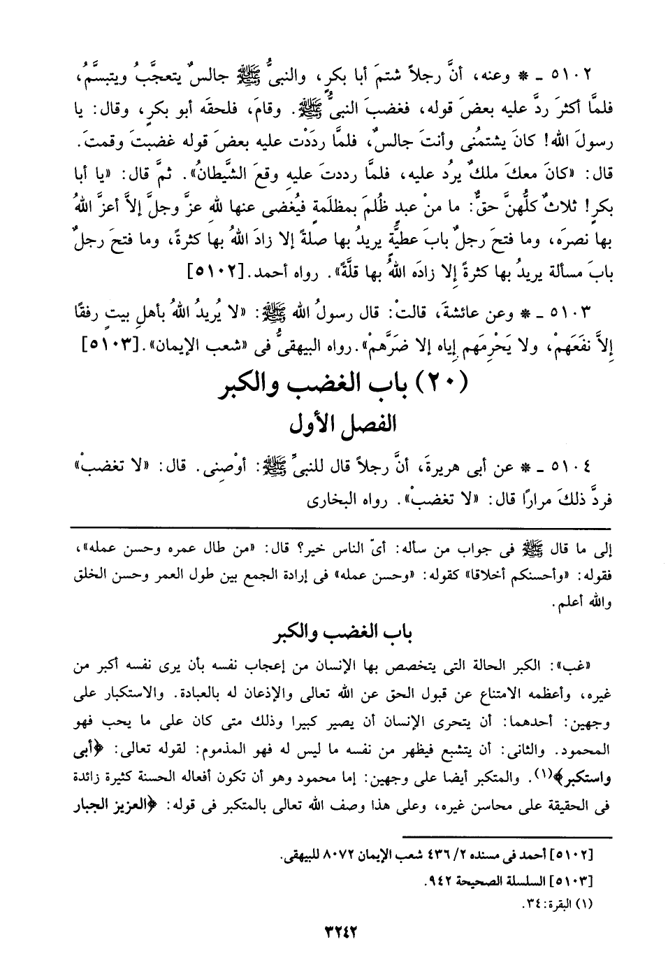 5104 - عن أبي هريرة، أن رجلاً قال للنبي صلى الله عليه وسلم: أوصني. قال: ((لا تغضب فرد ذلك مراراً قال: ((لا تغضب)). رواه البخاري.
