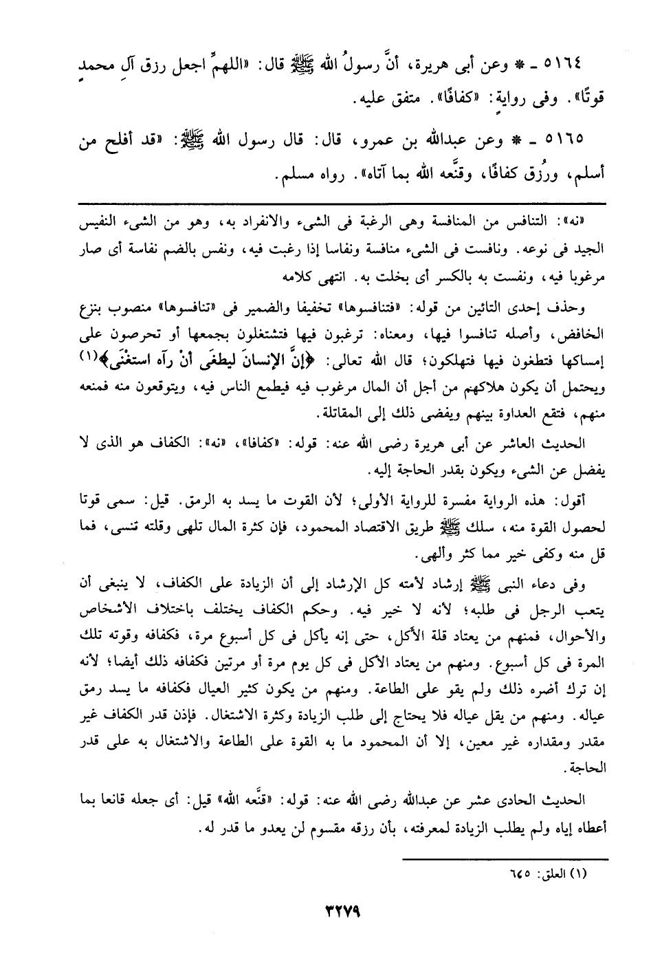 5165 - وعن عبد الله بن عمرو، قال: قال رسول الله صلى الله عليه وسلم: ((قد أفلح من أسلم، ورزق كفافاً، وقنعه الله بما آتاه)). رواه مسلم.