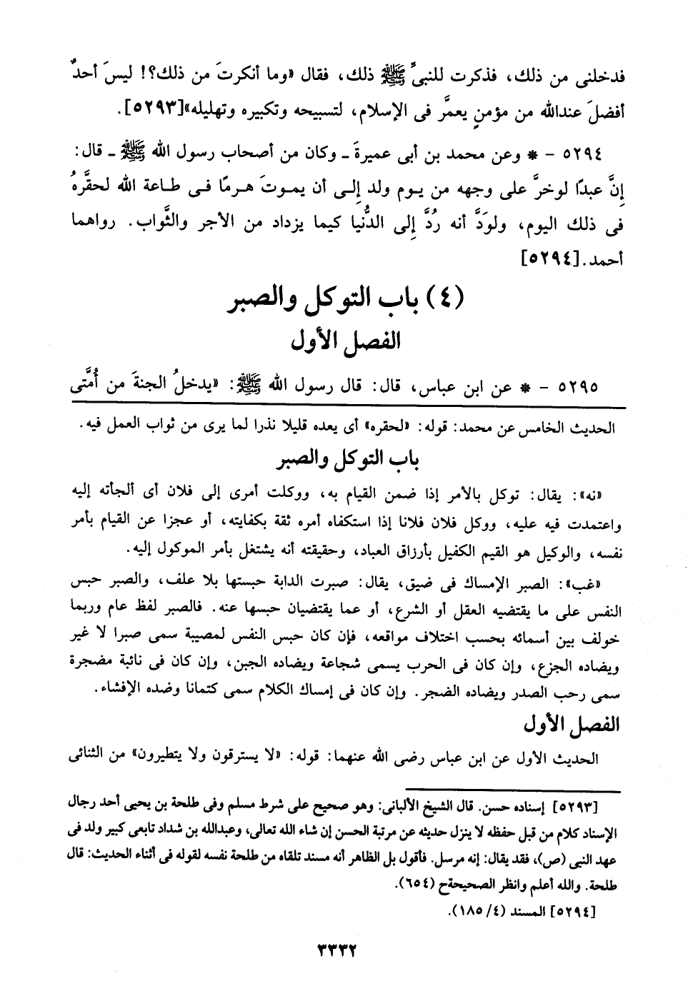 فدخلني من ذلك، فذكرت للنبي صلى الله عليه وسلم ذلك، فقال ((وما أنكرت من ذلك؟! ليس أحد أفضل عند الله من مؤمن يعمر في الإسلام، لتسبيحه وتكبيره وتهليله)) [5293]