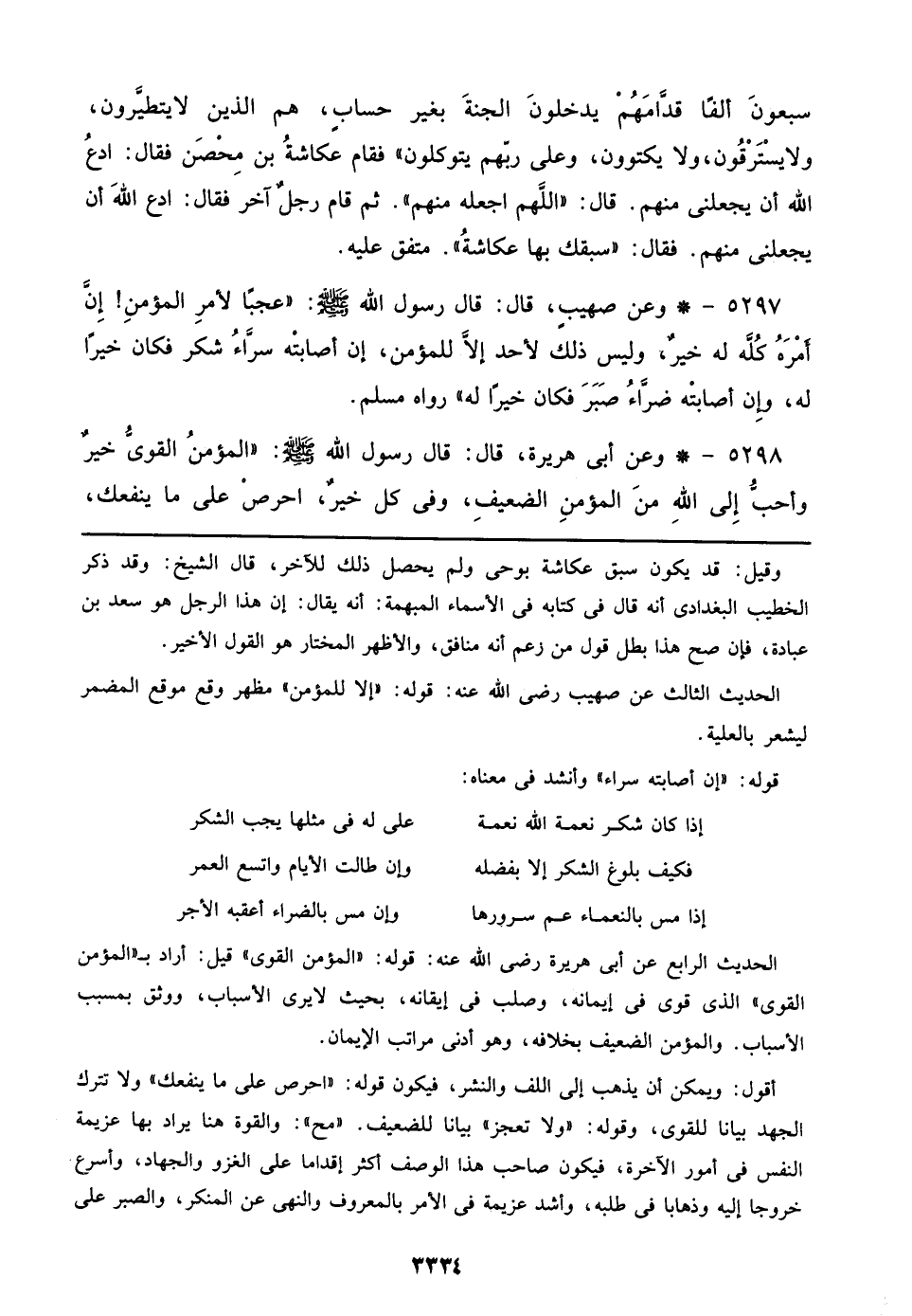 5297 - وعن صهيب، قال: قال رسول الله صلى الله عليه وسلم: ((عجبا لأمر المؤمن! إن أمره كله له خير، وليس ذلك لأحد إلا للمؤمن، إن أصابته سراء شكر فكان خيرا له، وإن أصابته ضراء صبر فكان خيرا له)) رواه مسلم.
