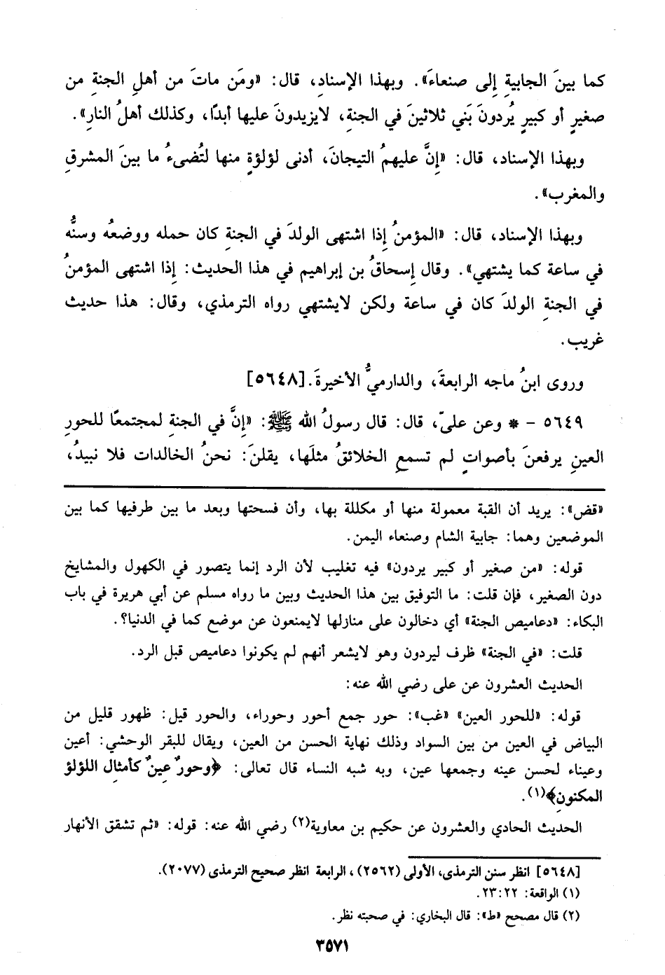 وبهذا الإسناد، قال: ((المؤمنُ إذا اشتهى الولدَ في الجنةِ كان حمله ووضعُه وسنُّه في ساعة كما يشتهي)). وقال إسحاقُ بن إبراهيم في هذا الحديث: إذا اشتهى المؤمنُ في الجنة الولدَ كان في ساعة ولكن لايشتهي رواه الترمذي، وقال: هذا حديث غريب.