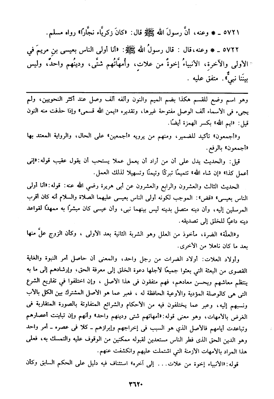 5722 - وعنه، قال: قال رسول الله صلى الله عليه وسلم: ((أنا أولى الناس بعيسى بن مريم في الأولى والآخرة، الأنبياء إخوةٌ من علات، وأمهاتهم شتى، ودينهم واحدٌ، وليس بيننا نبيٌّ)). متفق عليه.