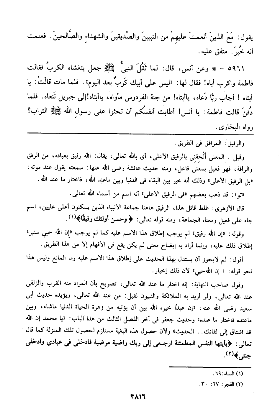 ((تو)): قد ذهب بعضهم ((في الرفيق الأعلى)) أنه اسم من أسماء الله تعالى.