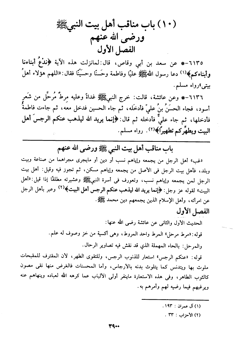(10) باب مناقب أهل بيت النبي صلى الله عليه وسلم