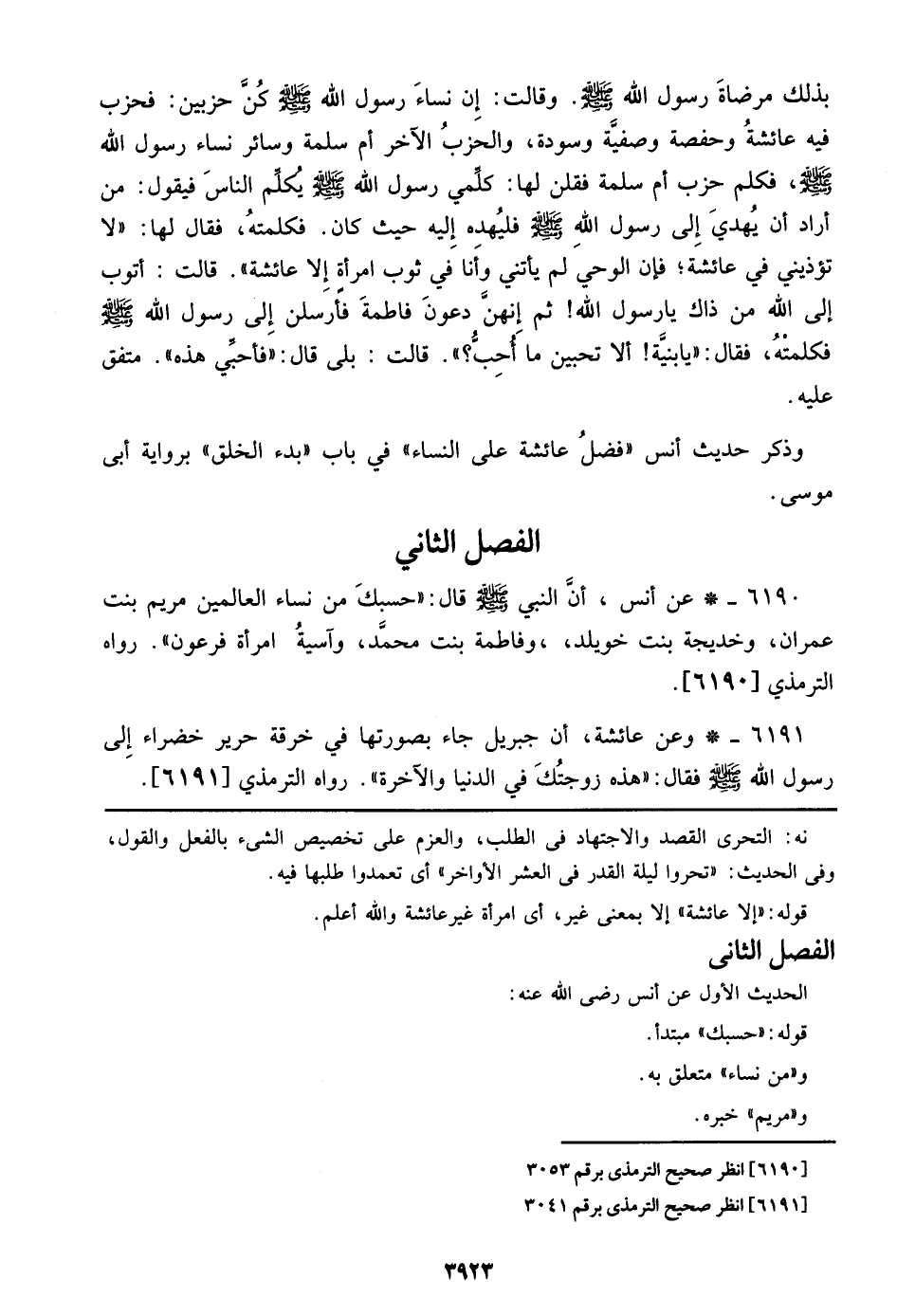 6190 - عن أنس، أن النبي صلى الله عليه وسلم قال: ((حسبك من نساء العالمين مريم بنت عمران، وخديجة بنت خويلد، وفاطمة بين محمد، وآسية امرأة فرعون)). رواه الترمذي [6190].