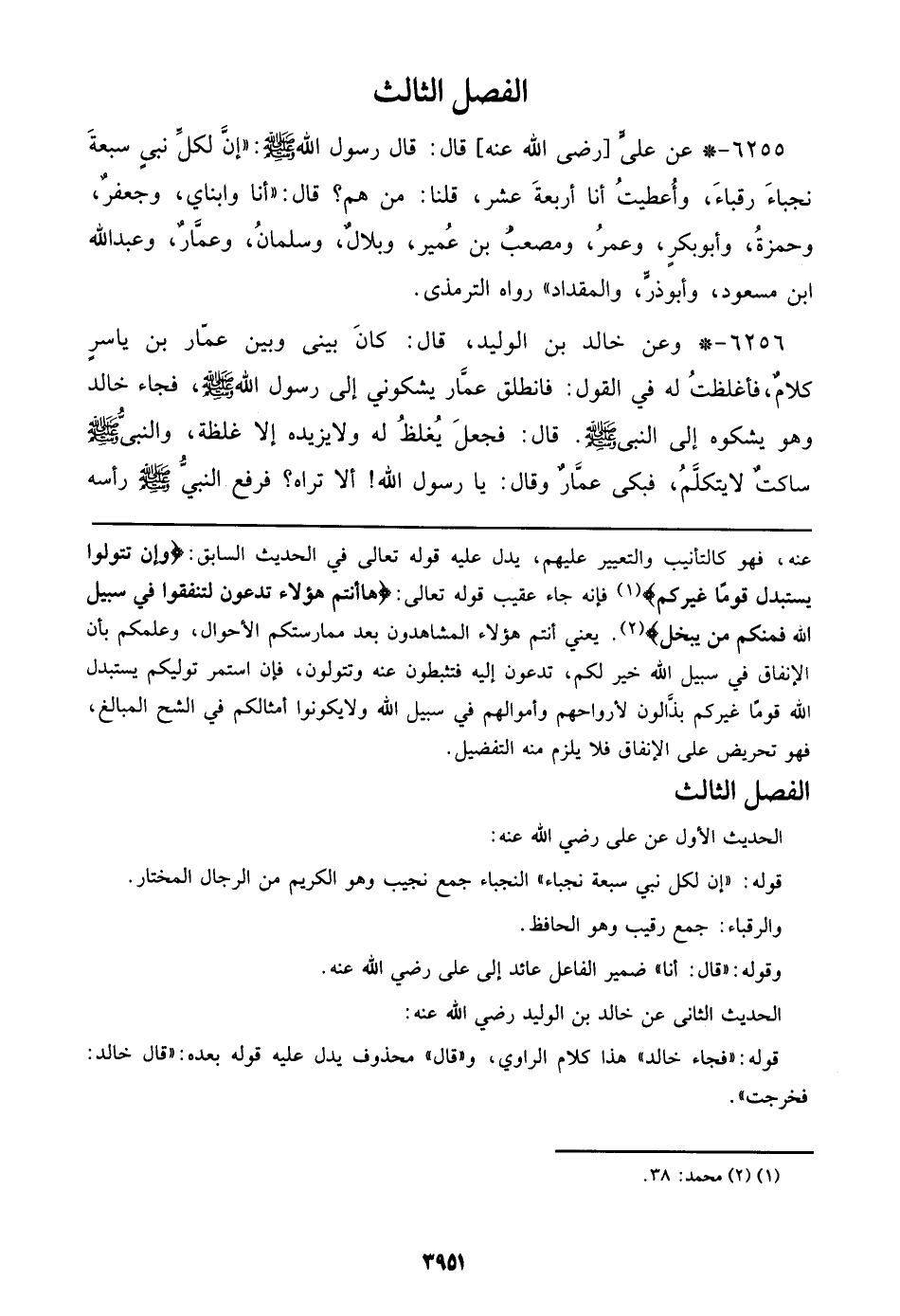 6255 - عن علي [رضي الله عنه] قال: قال رسول الله صلى الله عليه وسلم: ((إن لكل نبي سبعة نجباء رقباء، وأعطيت أنا أربعة عشر، قلنا: من هم؟ قال: ((أنا وابناي، وجعفر، وحمزة، وأبو بكر، وعمر، ومصعب بن عمير، وبلال، وسلمان، وعمار، وعبد الله ابن مسعود، وأبو ذر، والمقداد)) رواه الترمذي.