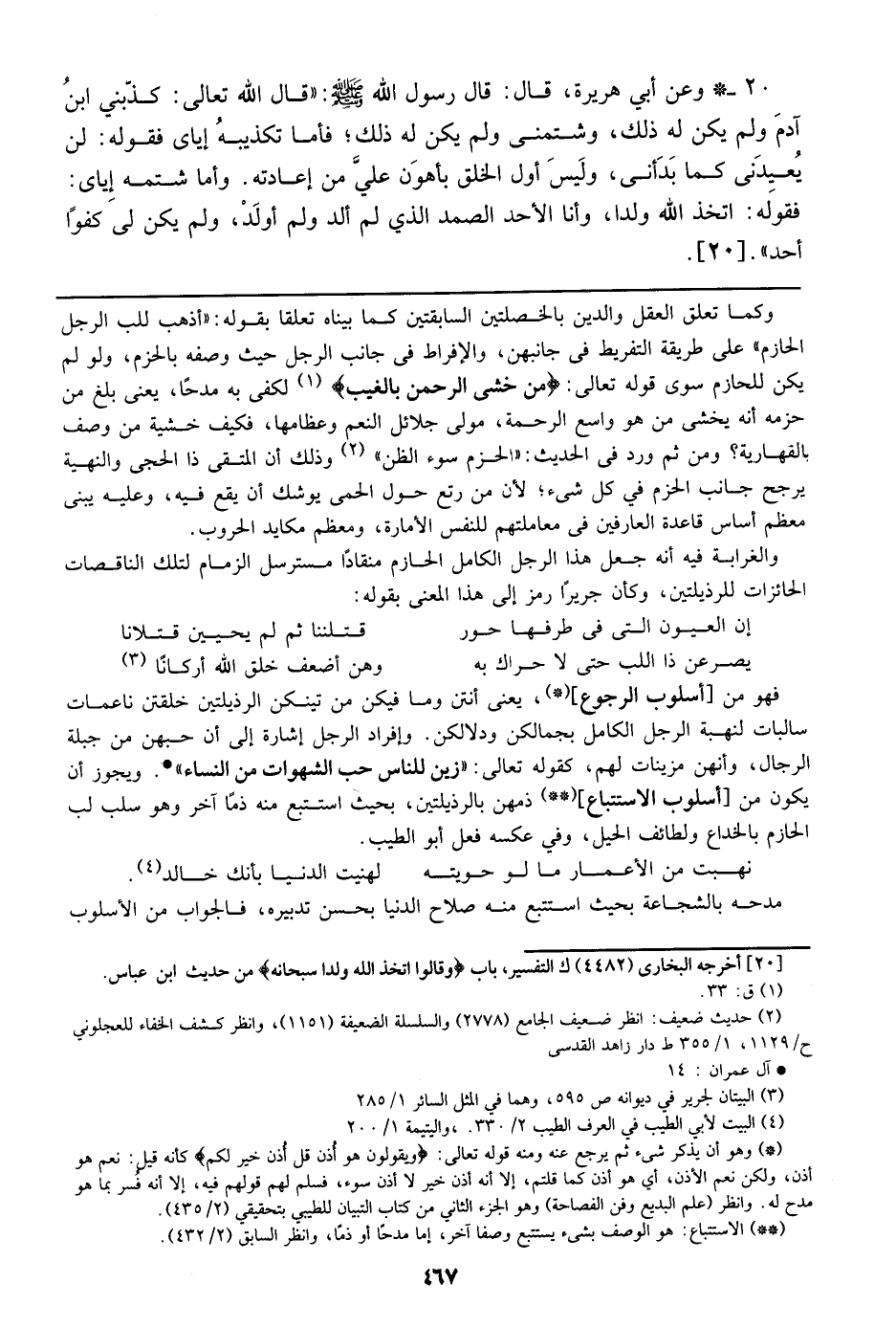 20_ وعن أبي هريرة، قال: قال رسول الله - صلى الله عليه وسلم -: (قال الله تعالى: كذبني ابنُ