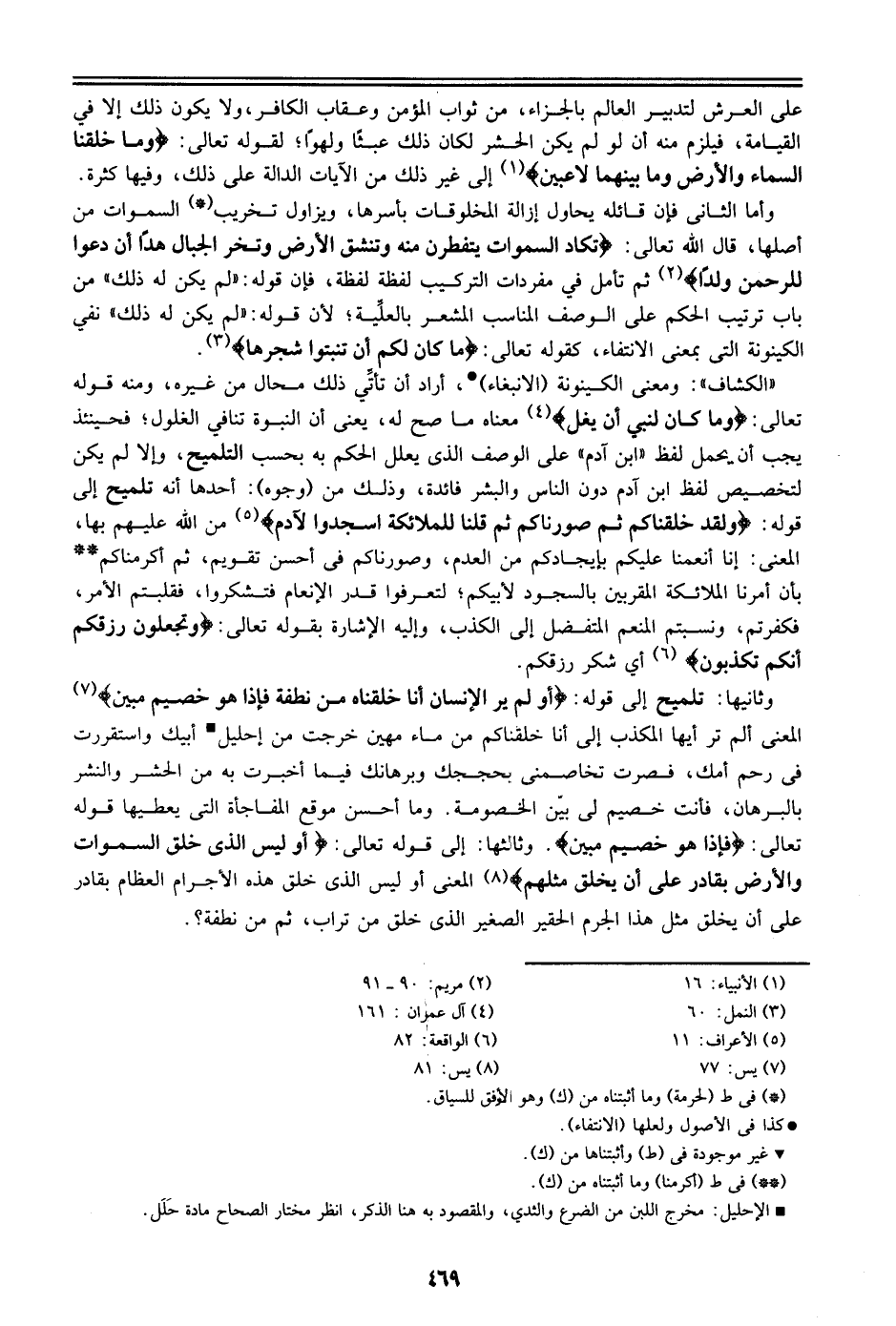 تعالى: (فإذا هو خصيم مبين). وثالثها: إلى قوله تعالى: (أوليس الذي خلق السموات