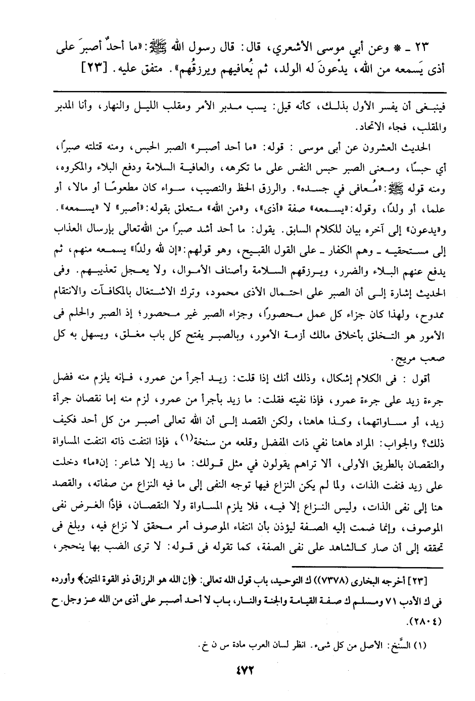 الحديث العشرون عن أبي موسى: قوله: (ما أحد أصبر) الصبر الحبس، ومنه قتلته صبراً،