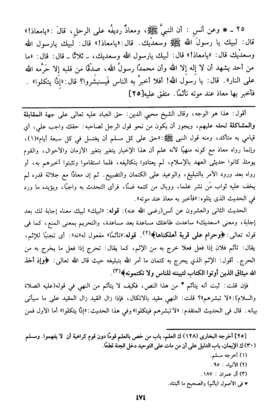 25_ وعن أنس: أن النبي - صلى الله عليه وسلم -، ومعاذ رديفه على الرحل، قال: (يامعاذ!)