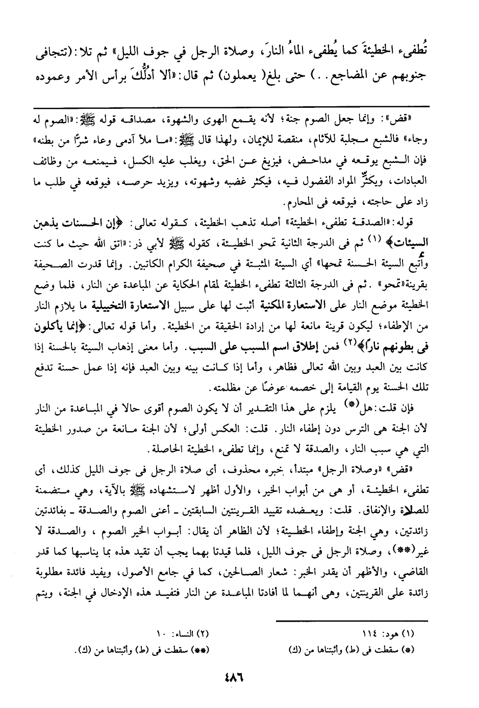 تطفئ الخطيئة كما يُطفئ الماء النار، وصلاة الرجل في جوف الليل) ثم تلا: (تتجافى