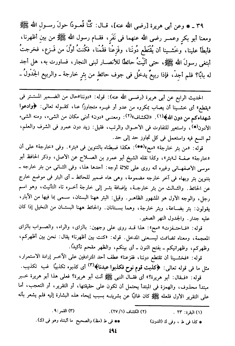 قوله: (من بئر خارجة) (مح): هكذا ضبطناه بالتنوين في (بئر). وفي (خارجة) على أن