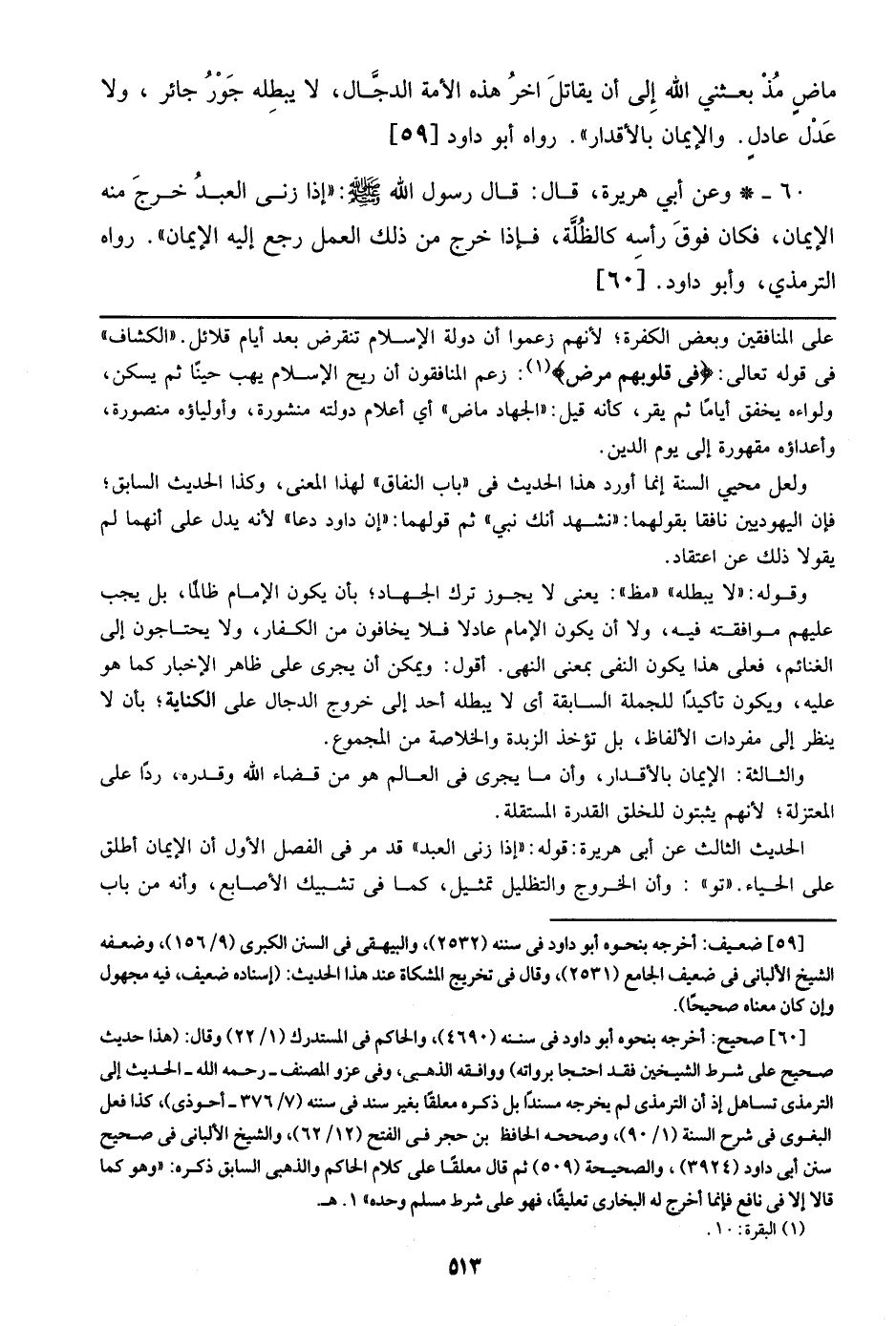 60 - وعن أبي هريرة، قال: قال رسول الله صلى الله عليه وسلم: ((إذا زنى العبد خرج منه الإيمان، فكان فوق رأسه كالظلة، فإذا خرج من ذلك العمل رجع إليه الإيمان)). رواه الترمذي، وأبو داود. [60]