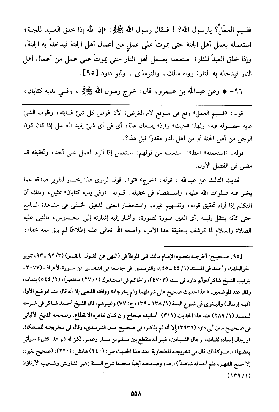 96 - وعن عبد الله بن عمرو، قال: خرج رسول الله صلى الله عليه وسلم، وفي يديه كتابان،