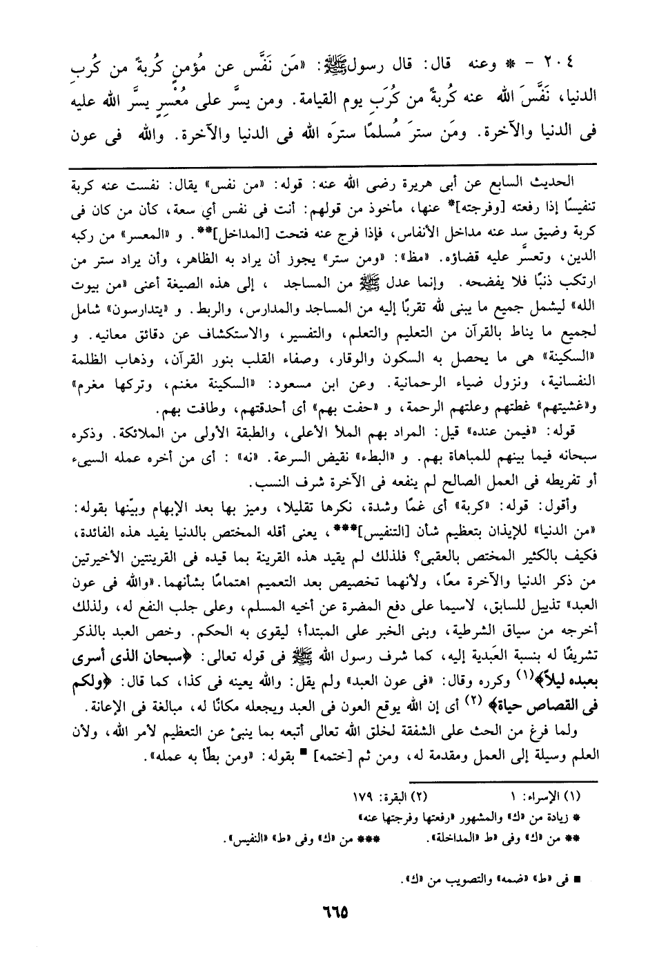 204 - وعنه قال: قال رسول الله صلى الله عليه وسلم: ((من نفس عن مؤمن كربة من كرب الدنيا، نفس الله عنه كربة من كرب يوم القيامة. ومن يسر على معسر يسر الله عليه في الدنيا والآخرة. ومن ستر مسلماً ستره الله في الدنيا والآخرة. والله في عون