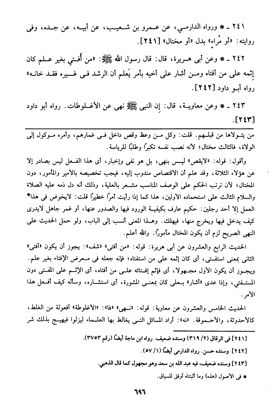 243 - وعن معاوية، قال: إن النبي صلى الله عليه وسلم نهى عن الأغلوطات. رواه أبو داود [243].