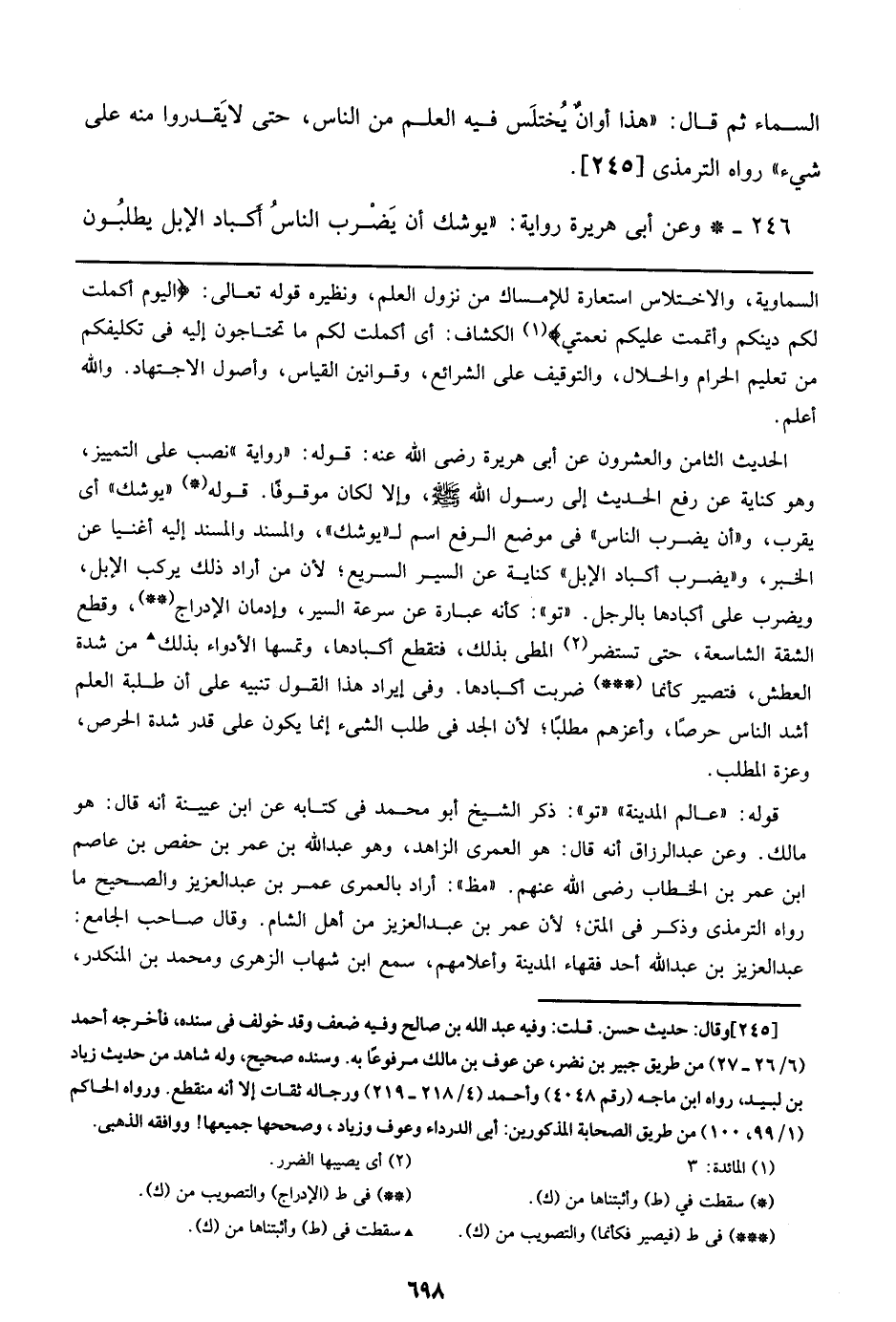 246 - وعن أبي هريرة رواية: ((يوشك أن يضرب الناس أكباد الإبل يطلبون