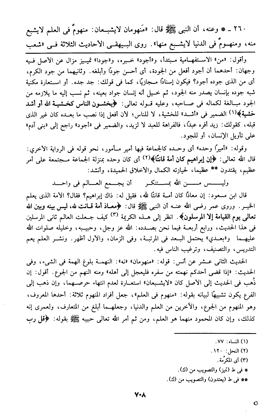 260 - وعنه، أن النبي صلى الله عليه وسلم قال: ((منهومان لا يشبعان: منهوم في العلم لا يشبع منه، ومنهوم في الدنيا لا يشبع منها)). ورى البيهقي الأحاديث الثلاثة في ((شعب