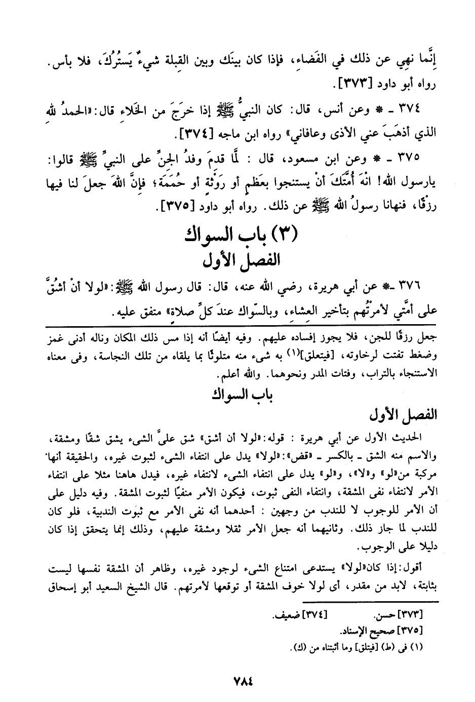 376 - عن أبي هريرة، رضي الله عنه، قال: قال رسول الله صلى الله عليه وسلم: ((لولا أن أشق علي أمتي لأمرتهم بتأخير العشاء، وبالسواك عند كل صلاة)) متفق عليه.