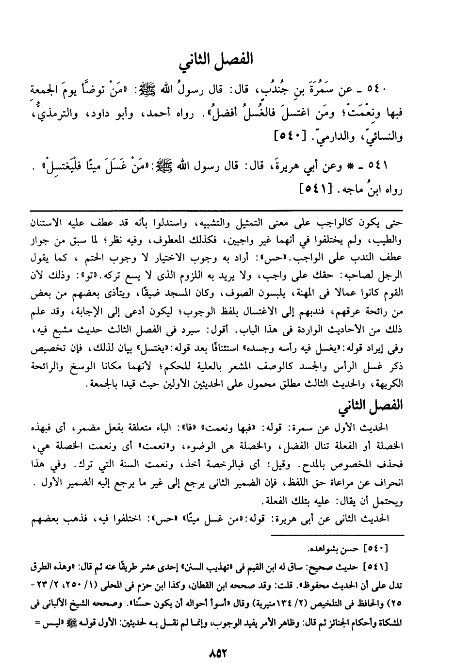 540 - عن سمرة بن جندب، قال: قال رسول الله صلى الله عليه وسلم: ((من توضأ يوم الجمعة فبها ونعمت؛ ومن اغتسل فالغسل أفضل)). رواه أحمد، وأبو داود، والترمذي، والنسائي، والدارمي. [540]