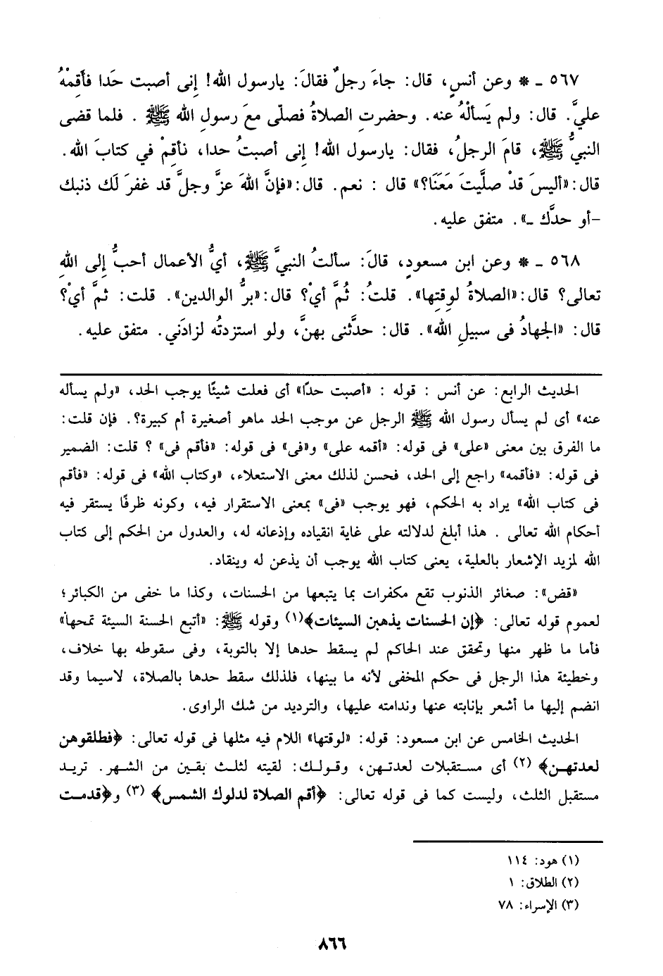 567 - وعن أنس، قال: جاء رجل فقال: يا رسول الله! إني أصبت حدا فأقمه علي. قال: ولم يسأله عنه. وحضرت الصلاة فصلي مع رسول الله صلى الله عليه وسلم. فلما قضى النبي صلى الله عليه وسلم، قام الرجل، فقال: يا رسول الله! إني أصبت حداً، فأقم في كتاب الله. قال: ((أليس قد صليت معنا؟)) قال: نعم. قال: ((فإن الله عز وجل قد غفر لك ذنبك- أو حدك-)). متفق عليه.