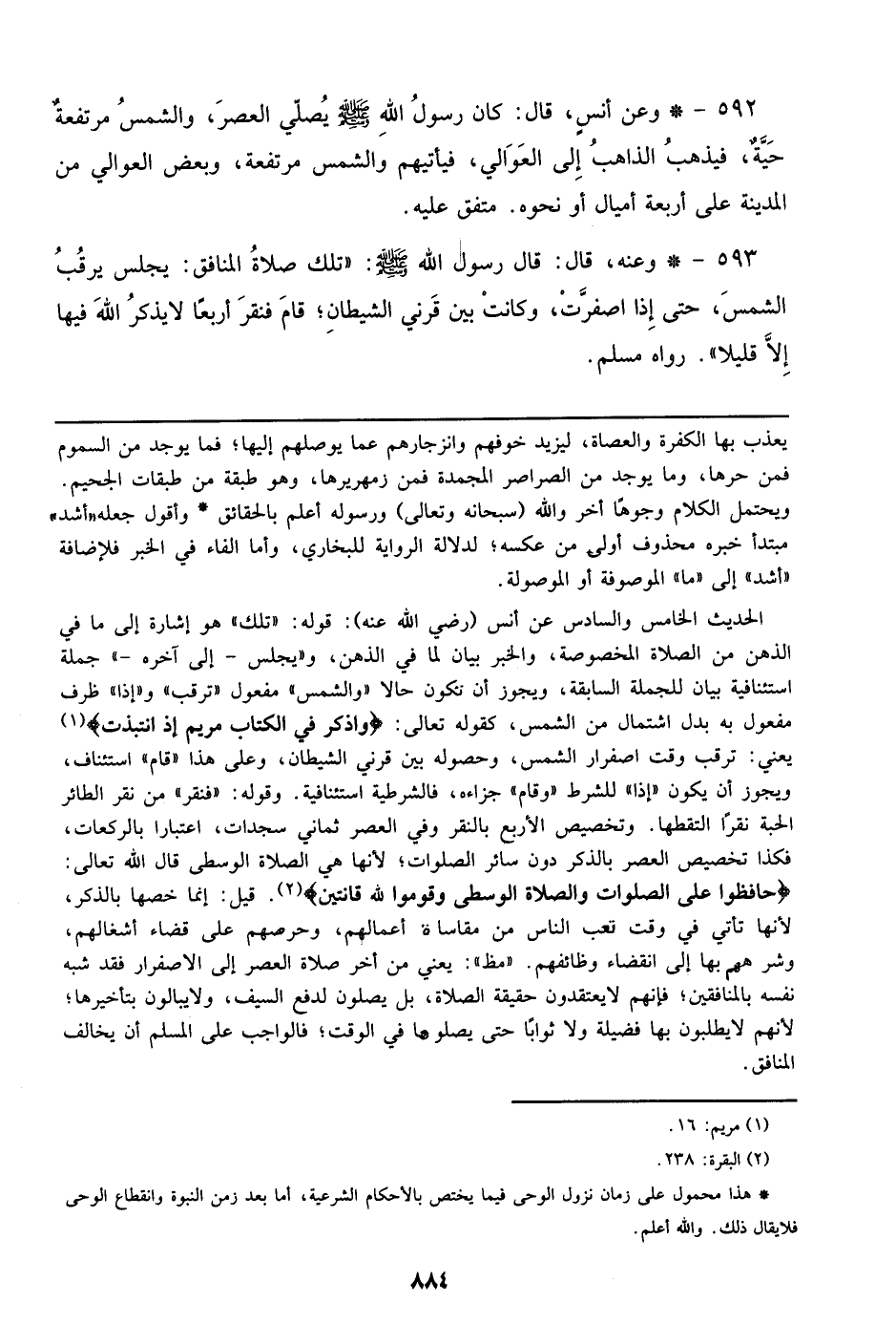 592 - وعن أنس، قال: كان رسول الله صلى الله عليه وسلم يصلي العصر، والشمس مرتفعة حية، فيذهب الذاهب إلي العوالي، فيأتيهم والشمس مرتفعة، وبعض العوالي من المدينة علي أربعة أميال أو نحوه. متفق عليه.